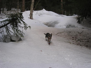 The First big mistake came at mile 15. Some how, due to a combination of errors, I ended up with a bladder full of super concentrated drink that I was only able to consume 5-6 sips of over the distance of 6 miles at which time I was able to dilute it. First off, I think I had more "strong" drink left in the bladder when I pulled into the 15 mile A/S than I thought. I always start off with a strong mix and then add water at the A/S. I didn't stop at any of the previous A/S, oops. Second, I think the bladder didn't get completely filled (I should have checked it). Thirdly, I think I may have made a math or counting error when I was preparing the baggie of drink powder. Any one or even two of these would have been OK and I still would have been able to get an adequate amount of fluids. Luckily there was snow on the ground that I used to cool off a little during the long climb up to the 21 mile A/S. I downed an extra 2 cups of water and a mocha at the next A/S but I knew I wouldn't be able to catch up on my hydration.